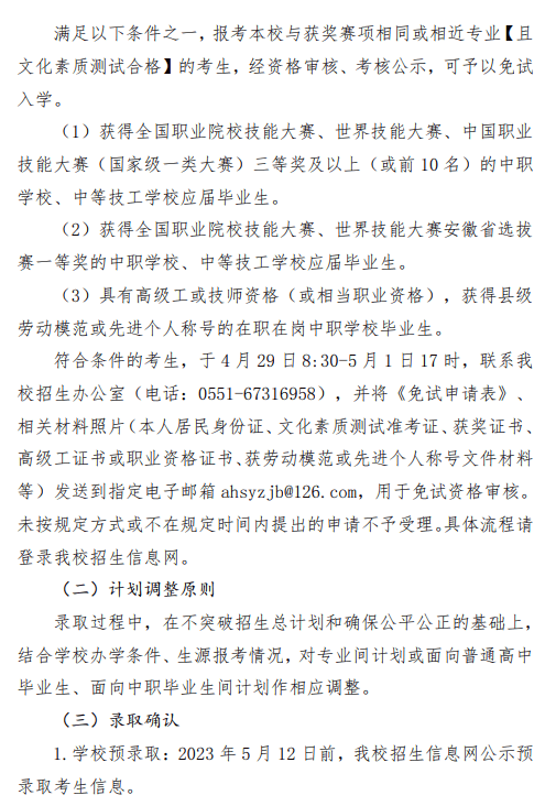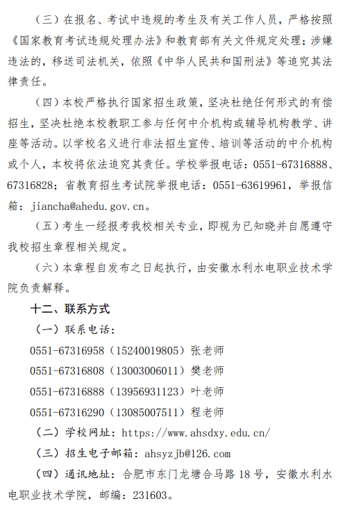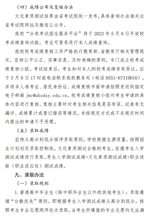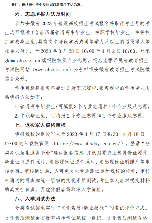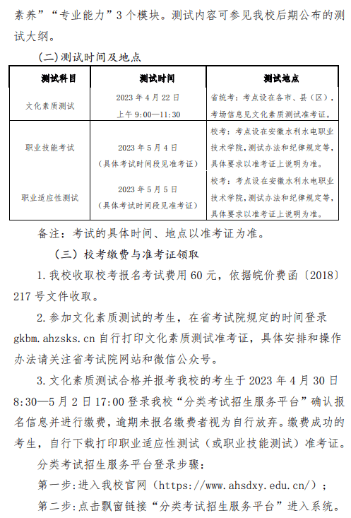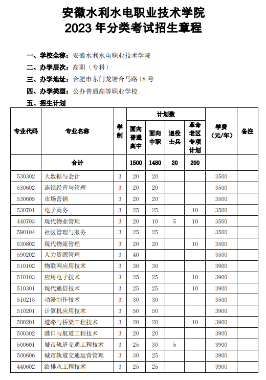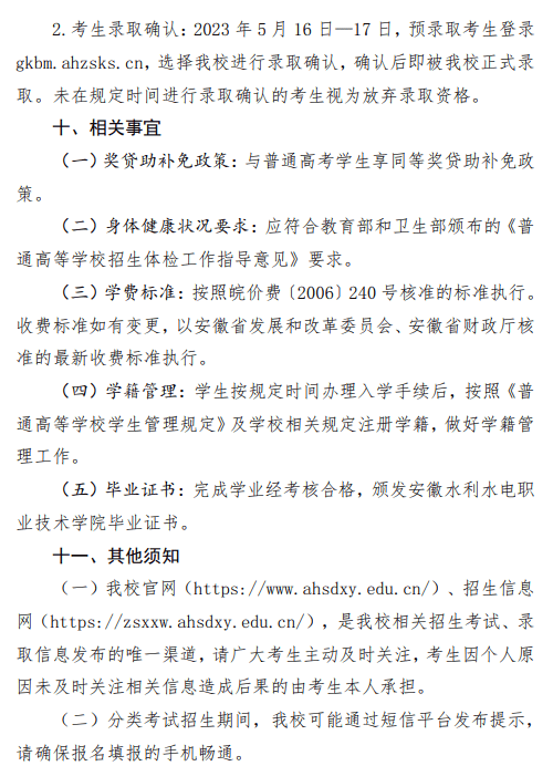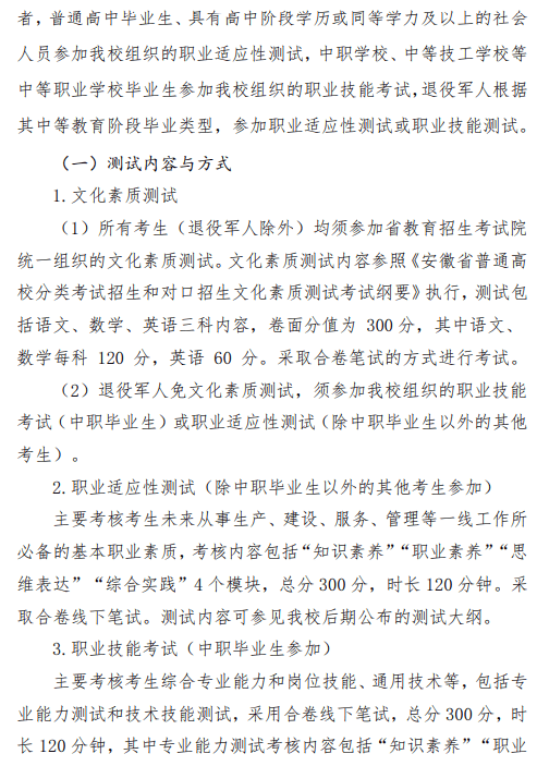 安徽水利水电职业技术学院2023年分类考试招生章程